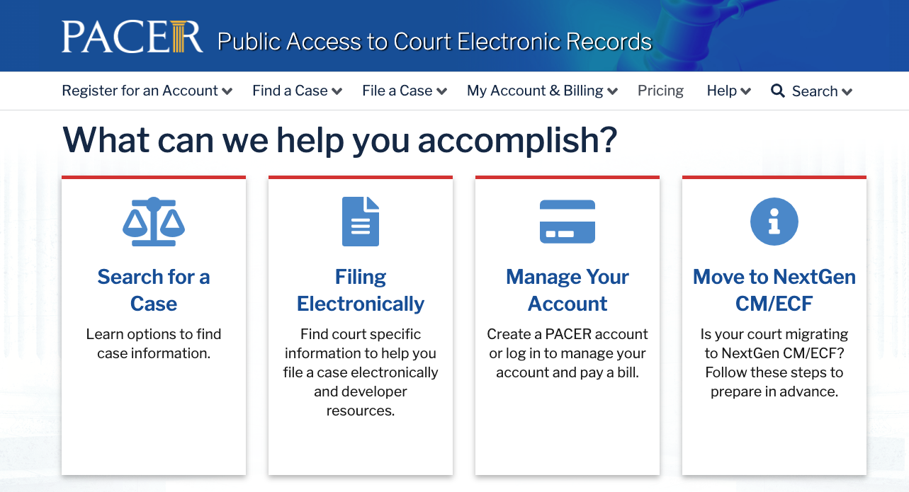 To quickly summarize the history, Congress first authorized the creation of a digitized court record system in the early 1990s, leading to the development of Public Access to Court Electronic Records, or PACER. Unfortunately, Congress did not authorize funds for this program, and as a result, users of PACER are charged a fee, on a per-page basis, for access to court dockets and case records.