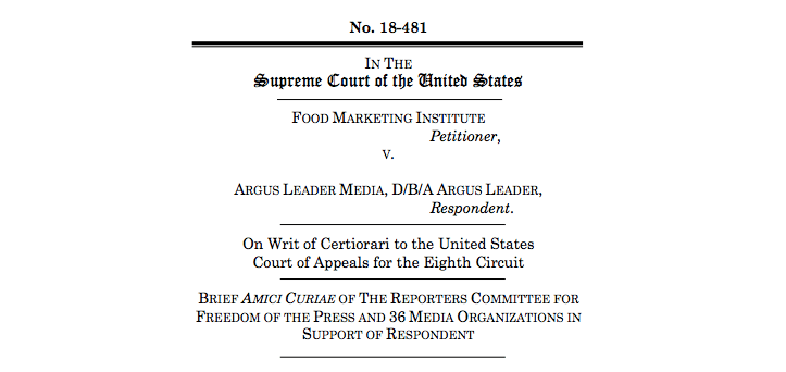 The Reporters Committee for Freedom of the Press is supporting Argus Leader Media in its fight for public access to information about how much revenue retailers earn from the federal nutrition assistance program, SNAP.