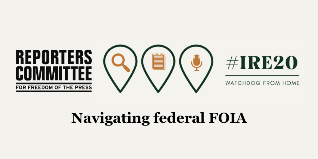 During a Sept. 22 panel discussion at the 2020 Investigative Reporters and Editors conference, Reporters Committee Legal Director Katie Townsend shared strategies for journalists trying to navigate the federal Freedom of Information Act, and encouraged reporters to pursue administrative appeals and litigation if they confront roadblocks while trying to access public records.