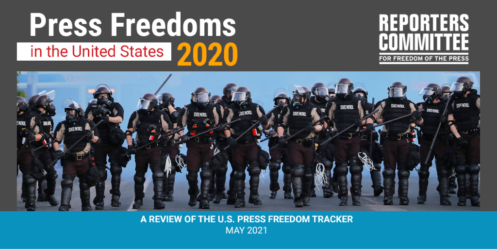 In 2020, journalists and news organizations across the United States faced record numbers of physical attacks, arrests and cases of equipment damage, as well as many other press freedom violations, according to the Reporters Committee’s fourth annual report analyzing data from the U.S. Press Freedom Tracker.