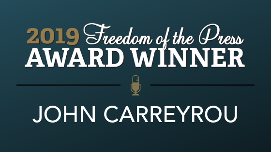 Reporters Committee honors John Carreyrou with 2019 Freedom of the Press Award
