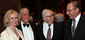 Ben Bradlee (2nd from left) with wife Sally Quinn and honorees Carl Bernstein and Bob Woodward (l-r) at the 2010 Reporters Committee First Amendment Awards Dinner. Bradlee, a 1995 honoree, introduced Woodward and Bernstein at the event.