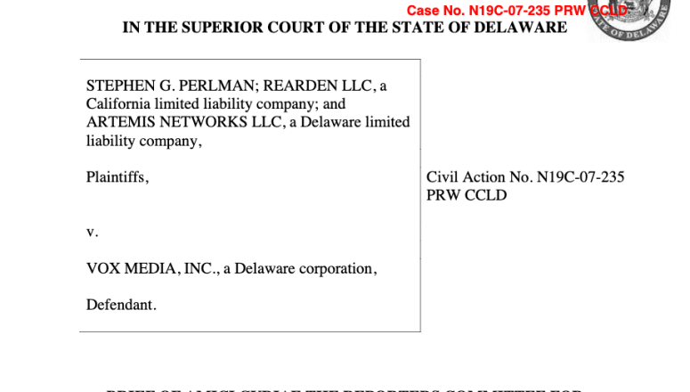 Amicus brief filed by the Reporters Committee for Freedom of the Press and 23 media organizations Court: Superior Court of…