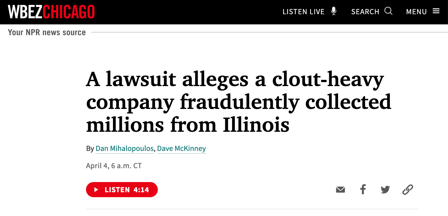 On April 4, WBEZ, Chicago’s NPR-affiliate, published an in-depth investigation into allegations that a company led by a politically connected lobbyist bilked Illinois taxpayers out of millions of dollars through a controversial state program that allows private companies to buy state debt.